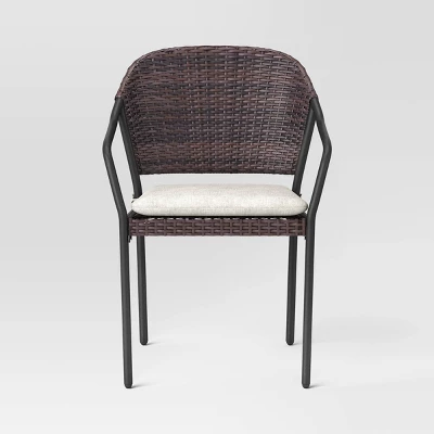 This 3-Piece Wicker Bistro Set with Cushions from Room Essentials™ is ideal for an impromptu dinner under the stars or working from home on your patio. This all-weather bistro set comes with a square table and two armchairs with wicker seats and backrests. Plus, it comes with two chair cushions for extra comfort. The compact outdoor set is made from steel, and the table has a tempered glass top for modern style.