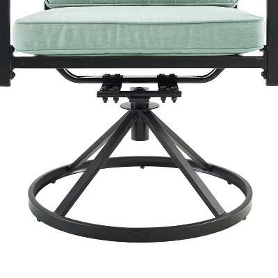 Gather around for a fun and fashionable outdoor meal with the Kaplan 5pc Round Dining Set. Constructed of sturdy steel, this set features a round table with a slatted design and four swivel dining chairs. Each chair showcases comfy back and seat cushions plus a classic x-back design and 360-degree swivel. The table’s standard umbrella hole will allow you to add some shade when dining on a hot summer day. Simple and stunning, the Kaplan 5pc dining set will be a welcome addition to your outdoor entertaining.