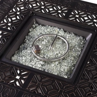 5pc Outdoor Dining Set With 42″ Aluminum Square Medallion Design Fire Table & Deep Seating Swivel Rocking Chairs – Oakland Living