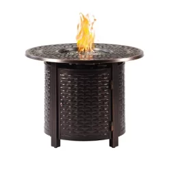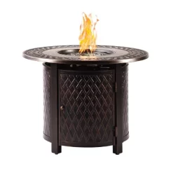 - This premium fire table set has a black antique copper finish applied via durable powder coat