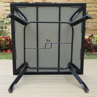 This black steel table offers comfy feeling when it serves as a dining table from Captiva Designs.It accommodates 4 seats around.The steel metal is powder-coated and strong enough for a long time serving.The wood-like table top gives extra elegant and beautiful look.It is a perfect choice for outdoor and indoor applying.