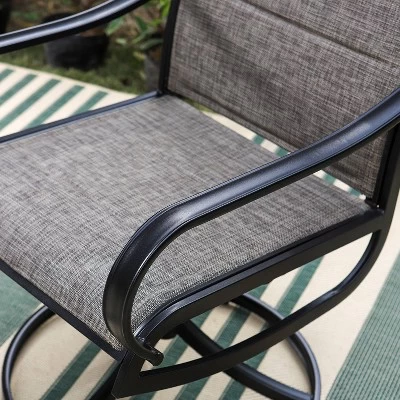 This chair from Captiva Designs is designed and constructed according to the ergonomics. The U-curve armrest ,3 steel bottom brackets and triangle structure supports the stability; Ergonomic curve back offers the extra comfort when you sit on it.Padded sling fabric and powder-coated steel frame jointly present the elegant and graceful look. It serves perfectly for outdoor or indoor.