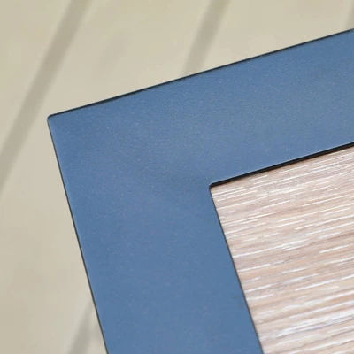 - Premium metal frame and wood-like table top