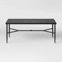 - Weather-resistant stable steel frame with dark gray, wood grain resin table top and benches. Includes umbrella hole