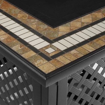 - Fire Table with Tiled Stone Top comes with a lid and protective cover