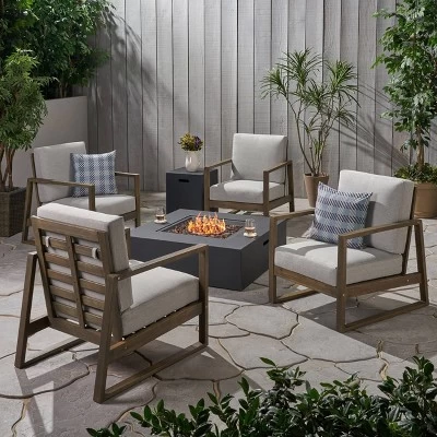 Belgian 6pc Acacia Wood Fire Conversation Set – Christopher Knight Home