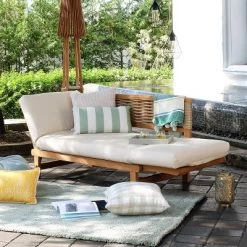 Cuddle up with your loved one on this spacious and comfy Auburn Teak Outdoor Sofa from Cambridge Casual. This beautiful patio sofa is crafted of fine quality teak wood that would last for many seasons. Pair this teak sofa with matching piece from Auburn collection to finish the best patio conversation sets.