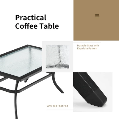 Including loveseat and coffee table, this outdoor patio furniture will be the perfect place to enjoy your leisure time. The thick and soft cushions are comfortable for sitting. Meanwhile, the ergonomic backrest and armrest can support your body cozily. And you can put your items on this large coffee table. What’s more, the rustproof steel frame, breathable olefin fabric, quick-drying fabric and high quality glass make our outdoor sofa bench and coffee table durable and stable.