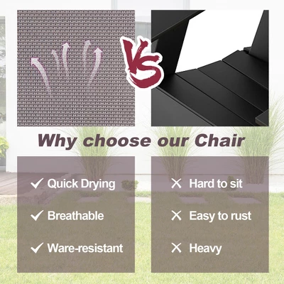 - Multi-purpose Patio Dining Chair: More than just a dinning chair, this sling chair can also be used in garden, balcony, poolside or yard. With the simple and modern exterior design, this patio chair can be the perfect addition to your outdoor relaxing space.