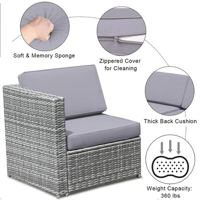 - A Complete Sofa Set: This 8 pieces sofa set includes 6 sofas, 1 storage box, 1 coffee table, 6 seat cushions and 6 back cushions. The cushions are made of non-woven fabrics and comfortable sponge. Besides, the covers can be detached and washed, which is convenient to keep clean.