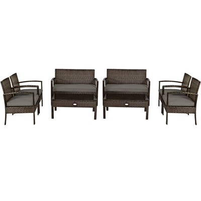 Costway 8PCS Rattan Patio Conversation Set Outdoor Furniture Set Garden W/Cushion