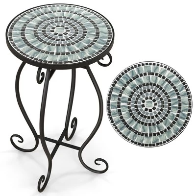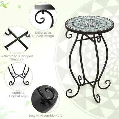 With attractive tile tabletop and black metal frame, the outdoor side table can blend with any decorative theme. Our patio mosaic end table is made of selected material for prolonged lifespan. The ceramic tile top is crack-resistant and easy-to-clean. Meanwhile, the powder-coated metal frame with black is rust-resistant and non-deformable. More importantly, it is more than a small coffee table, it is also a functional plant stand to display your potted plants. The compact and versatile design making it a stunning addition in many spaces, such as your garden, patio, yard, balcony, living room. In addition, it is easy to assemble within 3 steps.
