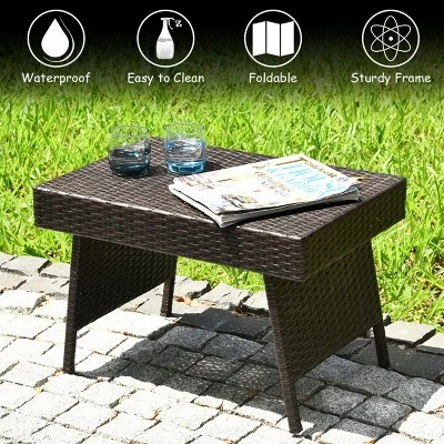 The wicker table will be a great addition in your outdoor space. Lie on the deck chair and put some food, books and flowers on the side table, there will be nothing better than this moment. The table is made of premium PE rattan and steel which is sturdy and durable for long time use. And the weight capacity of the table is about 110 lbs. With foldable design, the side table is easy to be folded and stored in limited space like corner and trunk. There is no need to assemble the table just screw two knobs after expanding the table. And the 4 pads at the bottom of feet can prevent slipping and protect the floor from scratching. With concise design, it is suitable to place beside your sofa or chair in backyard, patio, garden, poolside, dining room and living room.