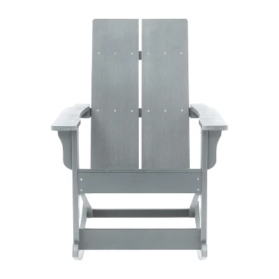 Create a comfortable seating arrangement on your deck, porch or patio with this set of two all-weather chairs, a modern twist on the classic adirondack chair with rocking legs for a relaxing experience. Sit outside on a warm summer night or enjoy a cozy fire on a crisp fall day with friends without worry. The poly resin construction of this chair offers premium weather resistance against rain and snow and ensures that the chair will not crack, splinter or chip while a durable UV resistant coating makes the vibrant navy color resistant to fading . All of the hardware is rust resistant stainless steel for lasting durability. A 350 lb. weight capacity and easy assembly make this the ideal chair for any users. This chair cleans easily with water and a dry cloth for easy maintenance.