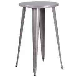 Complete your dining room, restaurant or patio with this chic bar table and chair set. This colorful set will add a retro-modern look to your home or eatery. Table features a smooth top and protective rubber floor glides. The stackable barstools feature plastic caps that prevent the finish from scratching while being stacked. This 5 piece table set is designed for indoor and outdoor settings. For longevity, care should be taken to protect from long periods of wet weather. The possibilities are endless with the multitude of environments in which you can use this table, for both commercial and residential spaces. Additional Features: Backless Design, Square Seat with Drain Hole, Cross Brace under seat provides extra stability, Plastic Caps on cross brace protect finish when stacked, Footrest