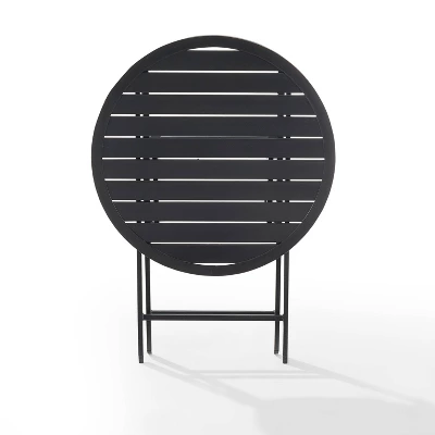 Add an intimate spot for outdoor dining to your balcony or patio with the Kaplan Folding Bistro Table. Sized perfectly to sit between two dining chairs, this powder-coated steel table has a classic slatted top and folds for easy storage. With a simple transitional design, the Kaplan bistro table pairs beautifully with a variety of seating styles.