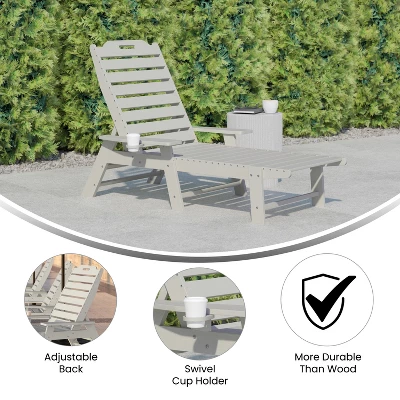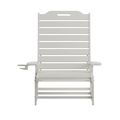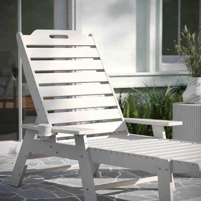 Total comfort can be delivered right to your door with this all-weather Adirondack style adjustable lounge chair with cupholder. Boasting a supportive back that can be adjusted to 5 recline positions, an elongated seat to cradle your lower extremities, and extra wide arms with a cupholder, this chair is ideal for any space. All weather HDPE mimics the look of wood, but is stronger and will not rot, chip, or peel and the UV fade resistance allows year round use. Assembly is quick and easy and a damp cloth takes care of any cleanup. Available in multiple colors, feel free to mix and match or maintain a uniform color to suit your personal taste.