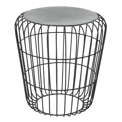 - This round outdoor accent table highlights a cage-like base made of metal rods