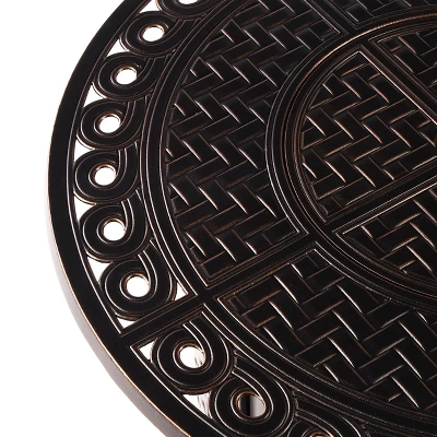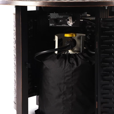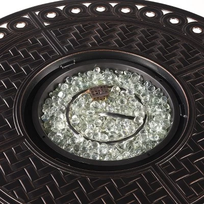 Oakland Living 5pc Aluminum Outdoor Patio Fire Pit Set With 34″ Round Propane Fire Table & Swivel Rocking Chairs Copper