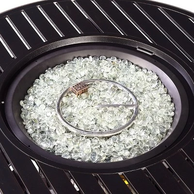 - This unit also comes with clear fire glass, a table lid, club chair cushions, propane cover and a protective fabric table cover
