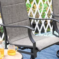 2pk Steel Patio 360 Swivel Padded Arm Chairs With Sling Seat & Back – Captiva Designs