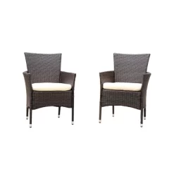 2pk Stefan Outdoor Acacia Wood Club Chairs With Cushions Brown/Beige – Christopher Knight Home