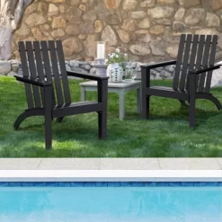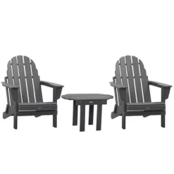 Merrick Lane Set Of Two Folding Adirondack Patio Chairs With Matching Outdoor Side Table