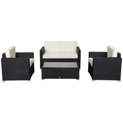 Our outdoor loveseat sofa set is compact yet versatile enough to have it all. It’s a recliner with a coffee table, an outdoor daybed, a reclining chair with a footrest, and a spot for storage. Three cushions pad you as you sit, recline and lay down. Two throw pillows offer a place for your head on the bed. Pull-out trays on the loveseat are a table for drinks and the ottoman converts into a coffee table for anything else. Our small sofa offers nearly everything. Get out, get comfy, get Outsunny.