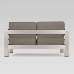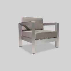 Aviara 5pc Aluminum Chat Set With Fire Pit – Silver/Khaki And Light Gray – Christopher Knight Home