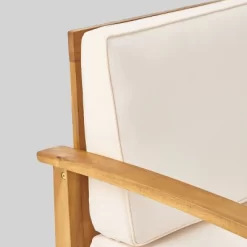 Driscoll 7pc Acacia Wood Chat Set With Fire Pit – Teak/Cream/Brown – Christopher Knight Home
