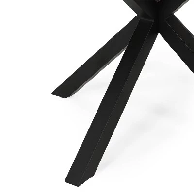 Set the tone of your next outdoor gathering with a well-chosen centerpiece. Crafted with a rich acacia wood top and a double X-shaped frame, our stunning dining table offers your backyard or patio space a sleek and stylish place to enjoy an afternoon barbeque or a hearty evening meal. This circular slat-panel table brings an impressive modern industrial atmosphere that can be easily matched with a variety of seating styles of your choice, making this the ideal addition to your home.