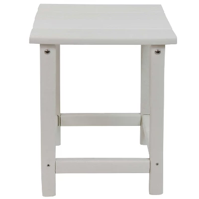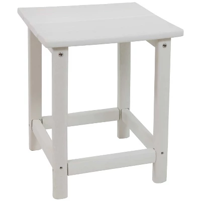 Add the perfect finishing touch to your patio, balcony or front porch with the Sunnydaze All-Weather Outdoor Side Table. Place this charming side table besides a chair or bench to provide a convenient place to set a refreshing drink, book, or plant. Available in many colors, this side table is sure to complement any existing decor in your garden, patio, deck, front porch, yard, or other outdoor area. Also use this table indoors for a quick and easy place to rest your things. This cool table features durable high-density polyethylene (HDPE) construction to withstand most weather conditions without cracking, chipping, or peeling. Also, easily clean up any dirt or spills with a simple solution of water and soap. The HDPE material requires no painting, staining, water-resistant coatings, or similar maintenance, unlike other chairs, ensuring yourself a low maintenance investment, while also providing a wood-like appearance. This patio side table is available in several vibrant colors to complement any decor.