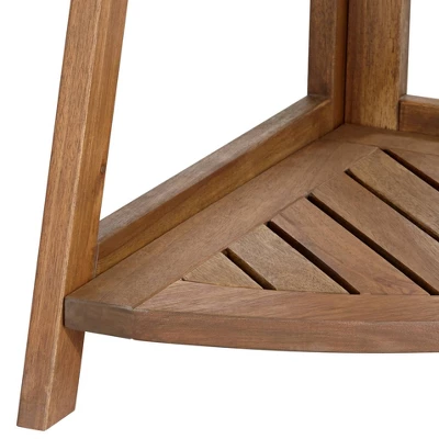 This three-shelf plant stand can be used in both indoor and outdoor locations, allowing for greater flexibility. Show off potted plants inside a living room or den area, or display wild growths in a garden or atrium. Made of acacia wood, this tapering design comes with slatted shelves for extra rustic charm.