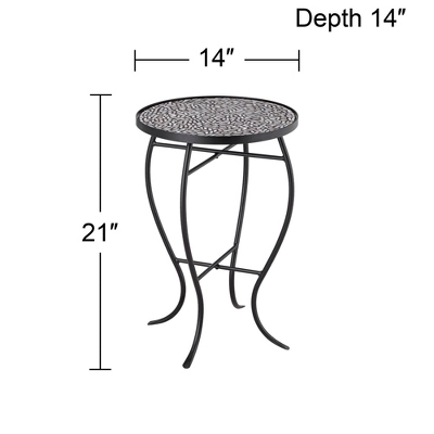 With its iron construction and free-form mosaic inlay, these Zaltana mosaic outdoor accent tables are perfect for outdoor uses. The gracefully curved legs provide an elegant look despite being used in an outside environment. They provide an excellent resting place for drinks and snacks while relaxing in the backyard.