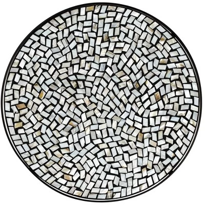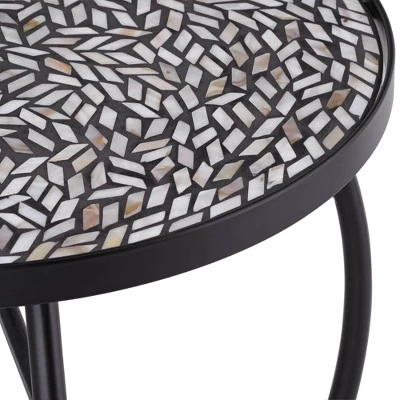 - Free-form mosaic tile inlay top. Black finish metal construction. Gracefully curved legs.